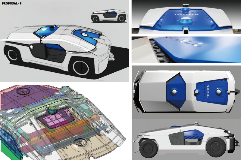 人員が搭乗しない完全自動運転を想定されたFCトーイングトラクターのコンセプト車両。 コア部分を保護するカウル形状と、自動運転だから成し得る低重心のシルエットとし、主にモデル製作を担当。